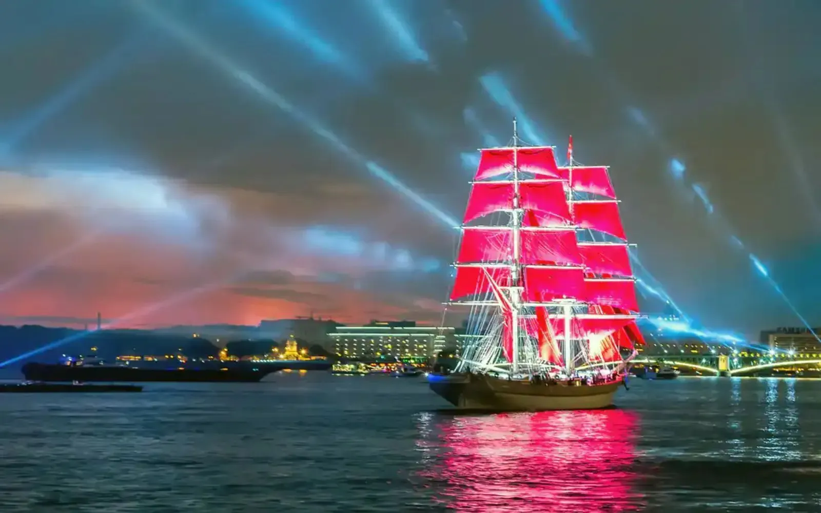 В ходе этой экскурсии вы увидите настоящее волшебство ночной Северной столицы: красиво освещенные проспекты и просторные городские площади и архитектурные шедевры Санкт-Петербурга и конечно же проход легендарного брига "Алые Паруса".