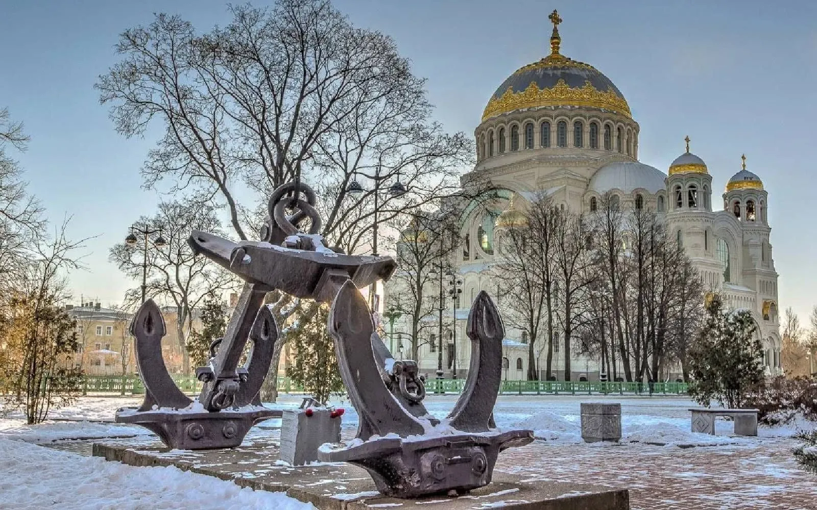 - Якорная площадь - главная площадь Кронштадта, сердце города. Здесь вы увидите памятник адмиралу Макарову, адмиралтейские якоря разных эпох и знаменитый Морской Никольский собор.
