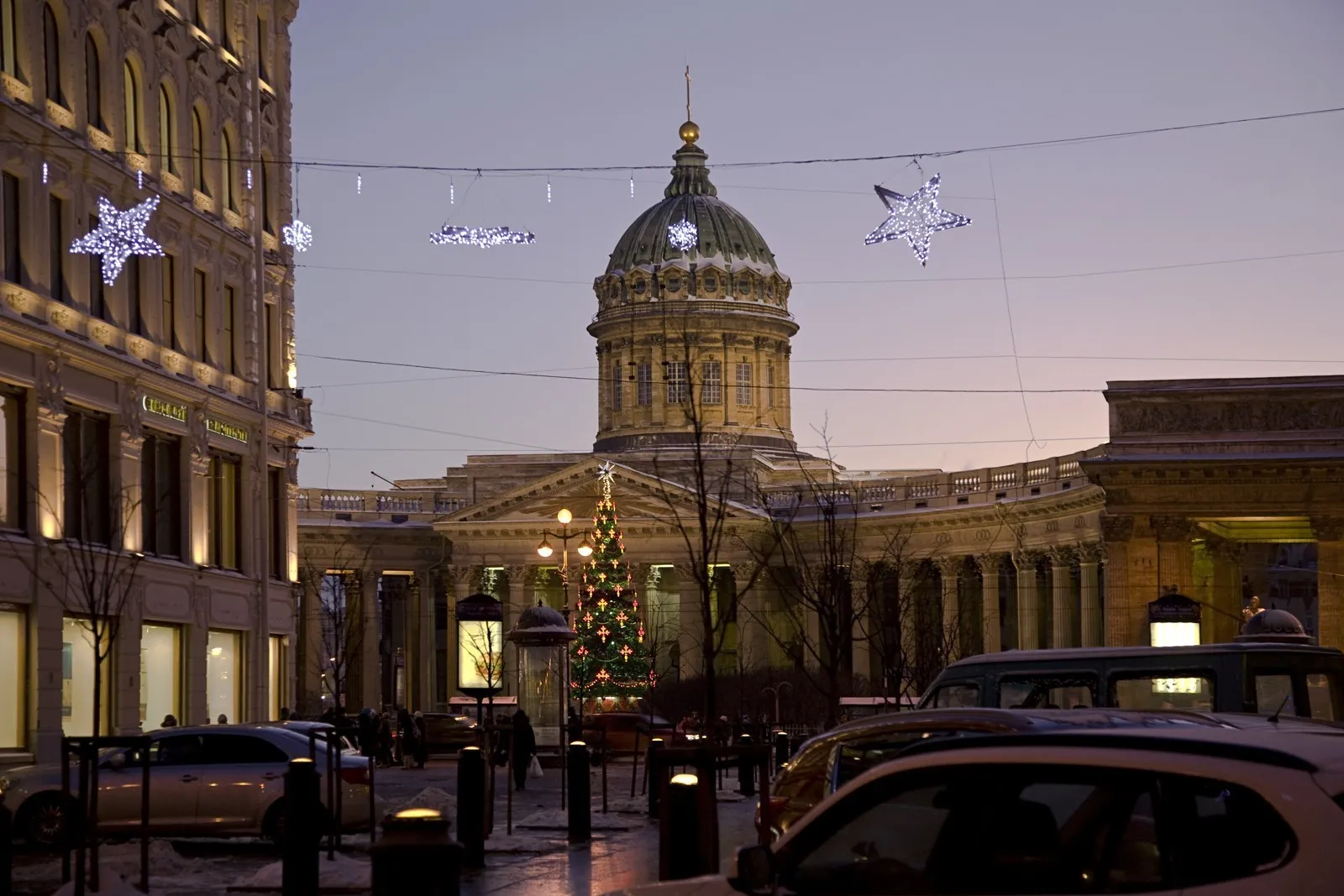- Исаакиевская площадь - собор в праздничных огнях выглядит особенно величественно.