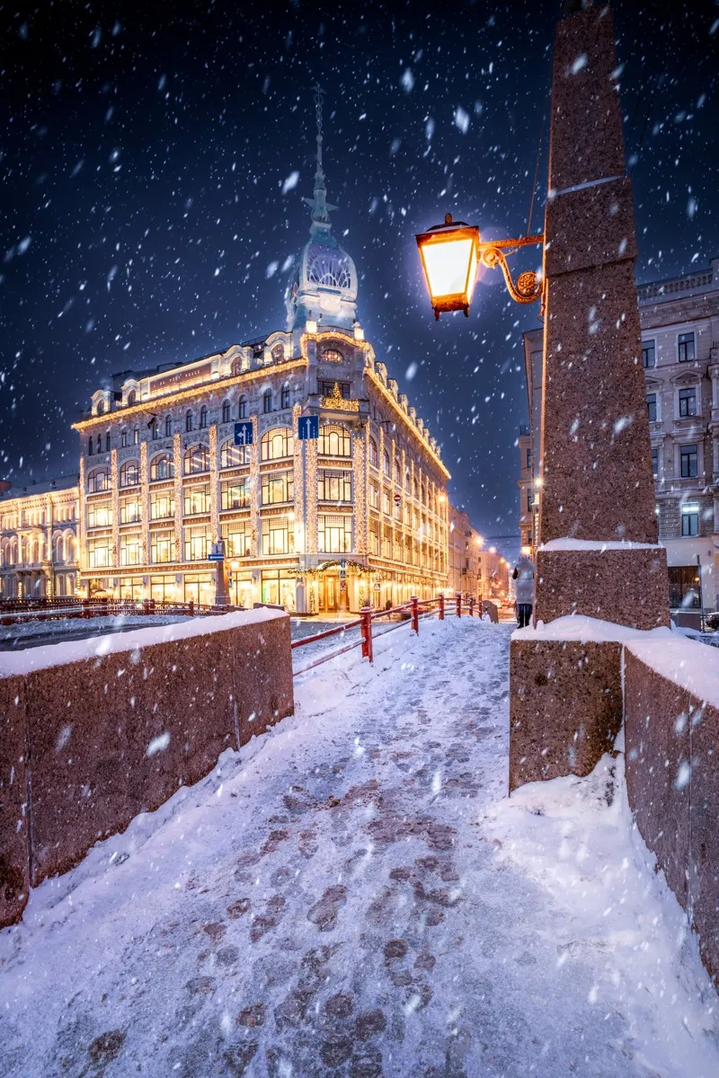- Казанский собор — Величественный символ русской воинской славы и одна из главных архитектурных доминант Невского проспекта. Его грандиозная колоннада, подсвеченная в зимних сумерках, создает совершенно особенное, торжественное настроение. Вы увидите, как праздничная иллюминация подчеркивает мощь и гармонию этого уникального храма-памятника.