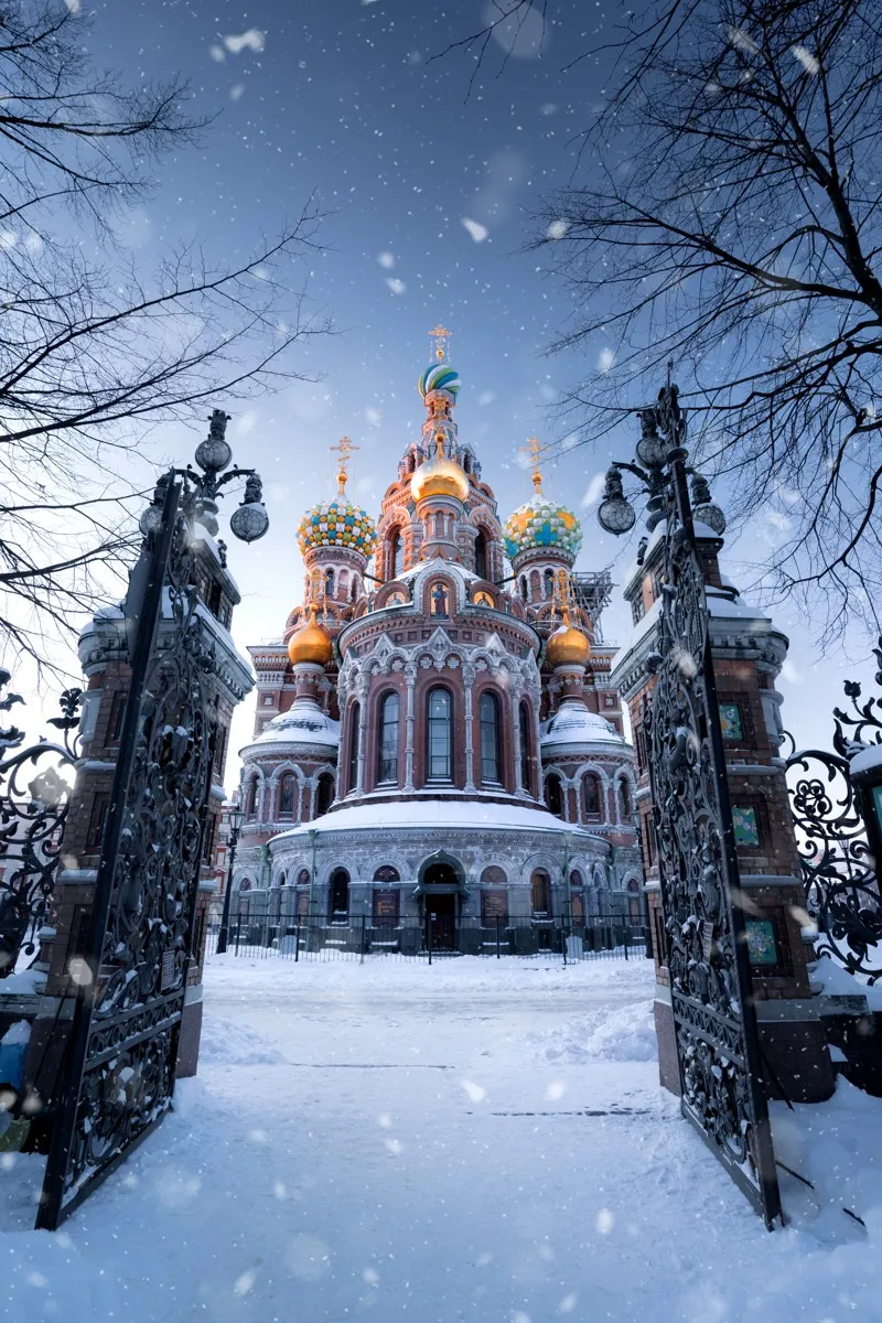 - Нико-Богоявленский Морской собор — Один из самых нарядных и «петербургских» храмов в обрамлении каналов. Его бирюзовые фасады и золотые купола, отражающиеся в темной воде, в праздничной подсветке выглядят как драгоценная шкатулка. Здесь вы почувствуете атмосферу уютного, теплого Рождества.